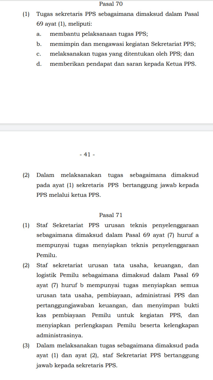 PKPU NO 3 Tahun 2018 Pasal 69, 70 dan 71 Tentang Sekretariat PPS 8 Juni 20208 Juni 2020 Ditulis oleh Admin Keceh Bagikan ini: Bagikan ke X(Membuka di jendela yang baru) X Bagikan pada Facebook(Membuka di jendela yang baru) Facebook Suka Memuat... Terkait
